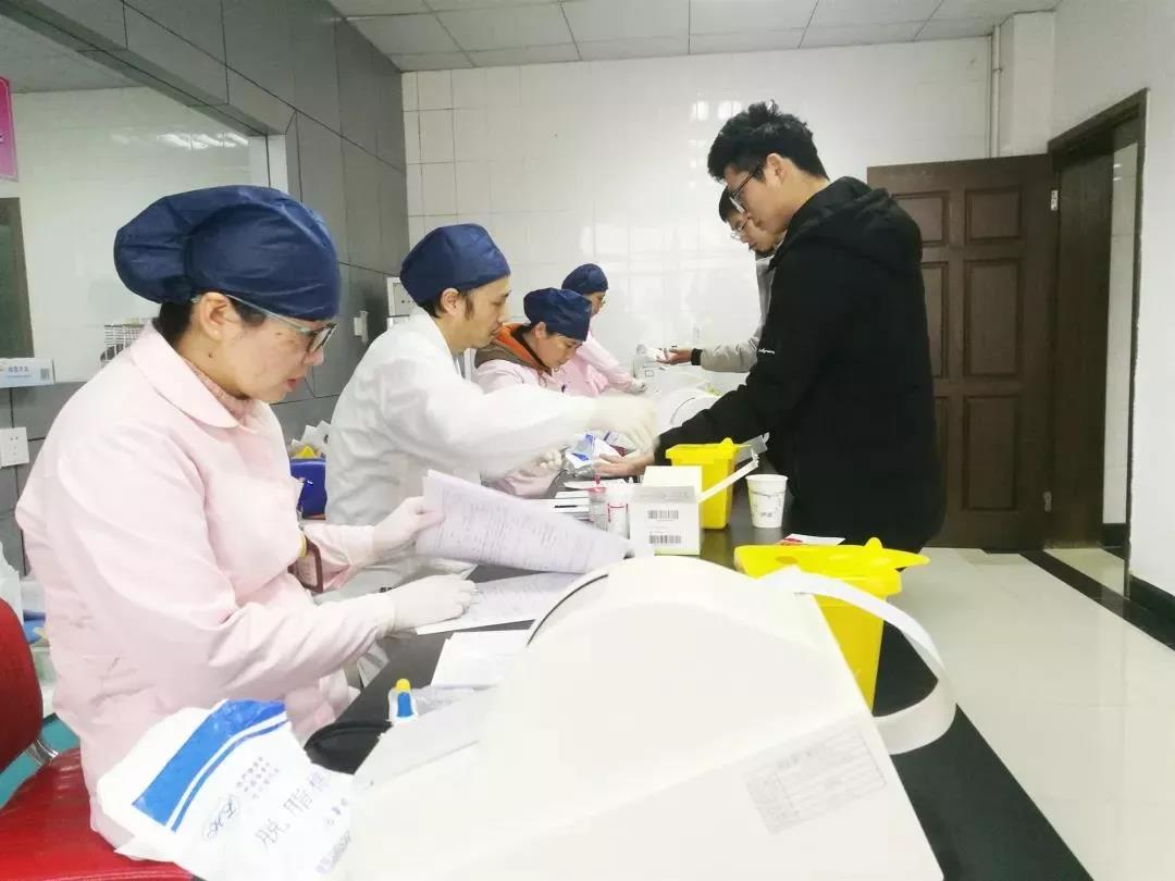 血站医护人员忙碌有序地开始工作,无偿献血者们则认真填写献血登记表、测量血压、抽血化验,随着初检、登记、献血等一个个步骤的完成,满含爱心的鲜红血液缓缓流向血袋。打响新年团体无偿献血第一枪,为农历己亥猪年无偿献血工作开了个好头。