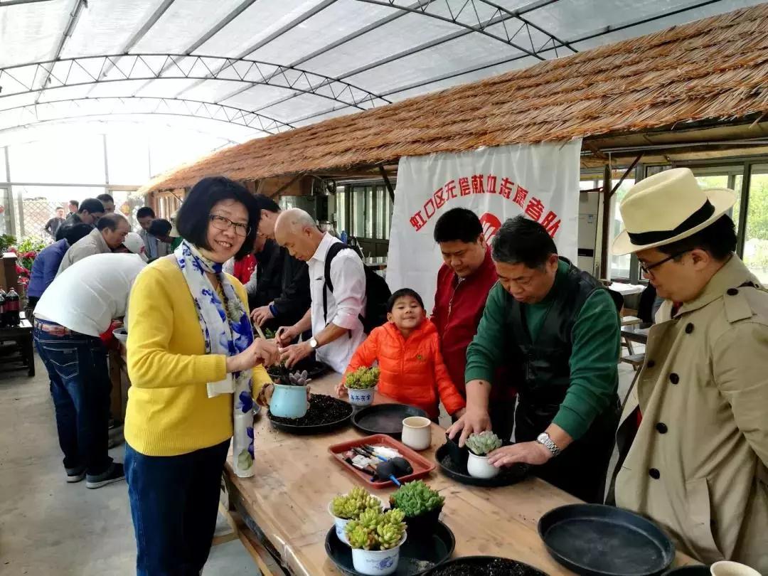 伴随着清晨的朝阳,虹口区无偿献血者开启了美妙的乡野之旅。绿意葱茏的田园风情,让人远离了城市的喧嚣。做板糕、种植多肉、漫步紫藤花下,共同书写一首“归园田居”。