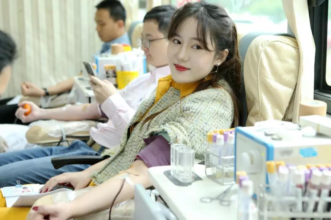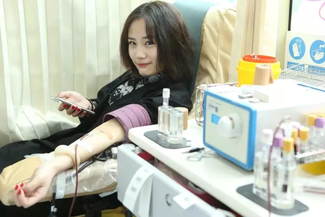 第2次无偿献血的杨茜爱心献血时不忘掏出手机请身旁的同事帮她拍照留念。首次参加无偿献血的操维维爱心献血前有点紧张,当看到自己的血液缓缓地流进血袋时她笑着说:“没想到这么简单就能救人,还以为会很痛呢!自己把自己吓了一跳。”