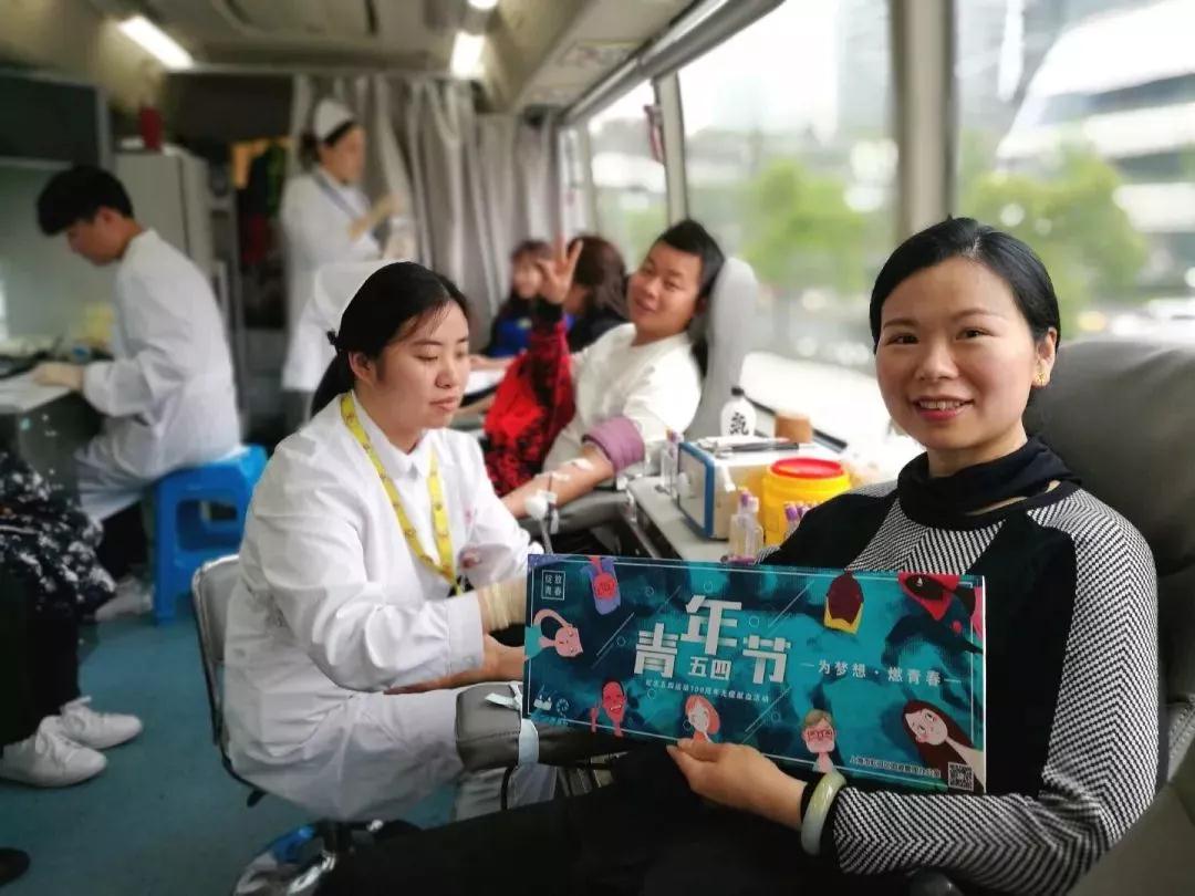 为了纪念五四运动100周年,4月29日上午,来自新华人寿保险上海分公司的青年员工在北外滩重温入团誓词。随后,近百名青年员工依次走上爱心献血车参加了无偿献血活动,以自己的实际行动诠释了新时代青年人对“五四”精神的理解,捐献热血18200ml。