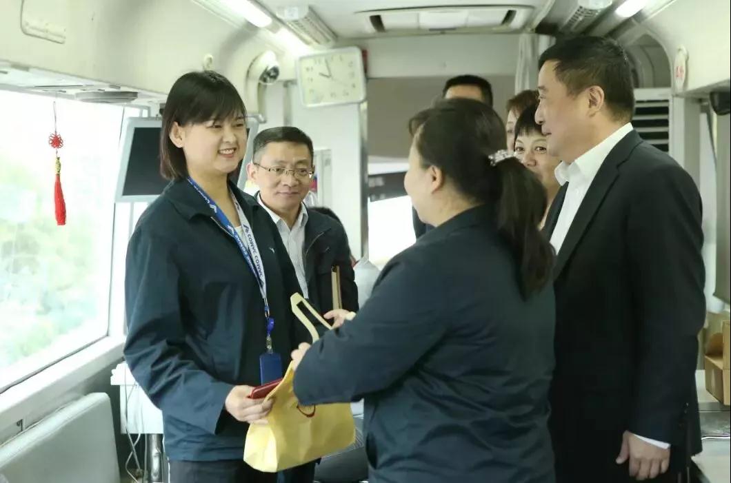 5月8日是世界红十字日也是世界微笑日,这是目前世界上唯一一个用人类行为表情命名的节日。当天上午,中国商飞上海飞机客户服务有限公司大院驶进一辆特殊的车辆——红白相间、印着大大“爱”字的爱心献血车,27名爱心员工依次登上爱心献血车捐出热血真情,挽救他人生命。公司党委副书记张效、副总经理陆峥、办公室主任刘英飞、工会主席李玉满到场向参加无偿献血的员工表示感谢和慰问。