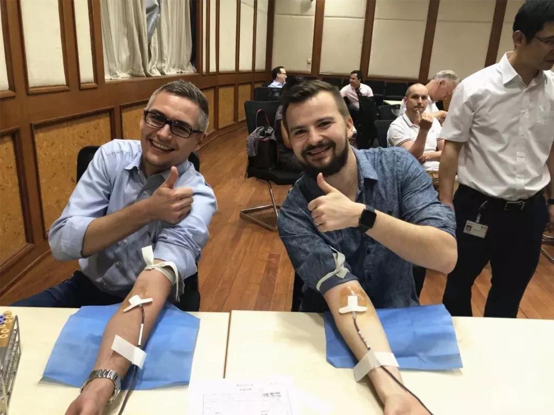 虽然肤色不一样,种族不一样,但无偿献血不分国籍。公司的外籍人士纷纷撸起袖子,伸出手臂,用热血诠释爱心无国界,见证大爱情怀。
