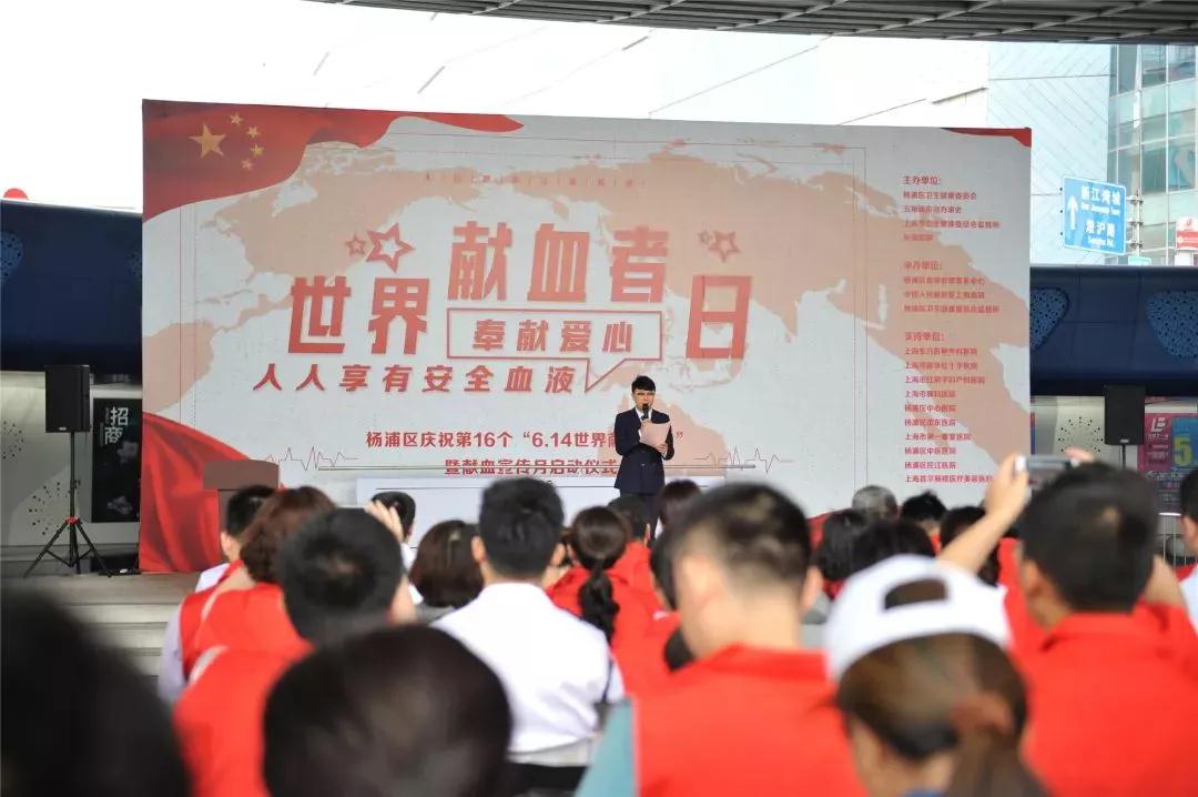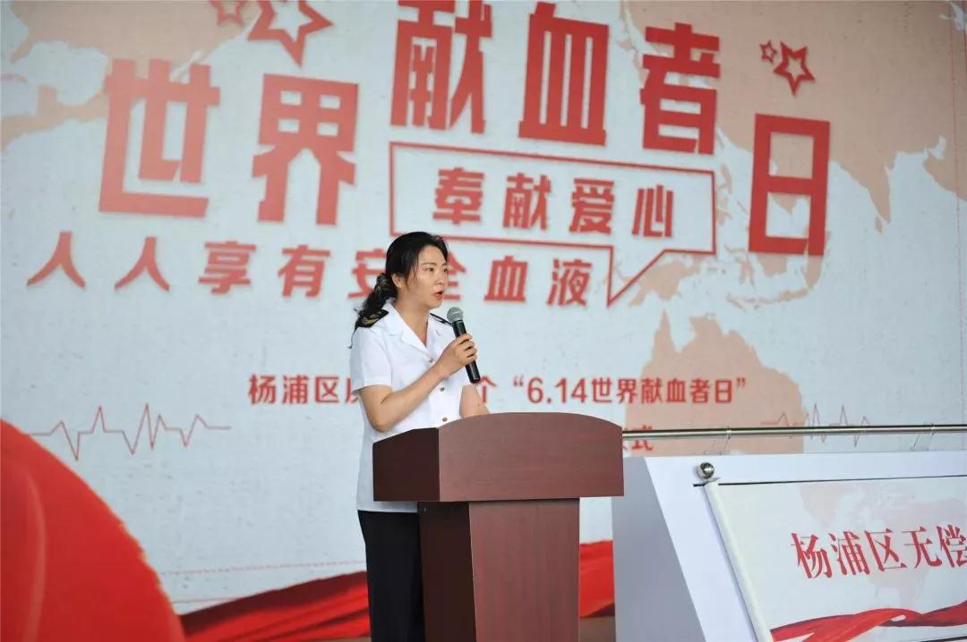 今天上午(6月14日),以“人人享有安全血液”为口号的杨浦区庆祝第16个世界献血者日宣传活动在五角场广场举行。杨浦区卫健委刘欣宇在活动开幕中致辞,复旦大学附属妇产科医院输血科刘晓艳主任、优秀献血宣传志愿者洪军英女士在开幕中演讲,市血液管理办公室陈强副主任、市卫健委监督所医疗质量监督科朱亚捷科长、长海医院输血科钱宝华主任讲话,杨浦区卫健委薛人翼副主任、五角场街道办事处闫俊平副主任、社管办赖华恩科长、杨浦区中心医院周雄文副院长、杨浦区中医医院张书富院长、控江医院胡冬根副院长以及杨浦区域内各临床用血医院的专家团队、一线医务工作人员、卫监所和社区献血组织者出席此次活动。