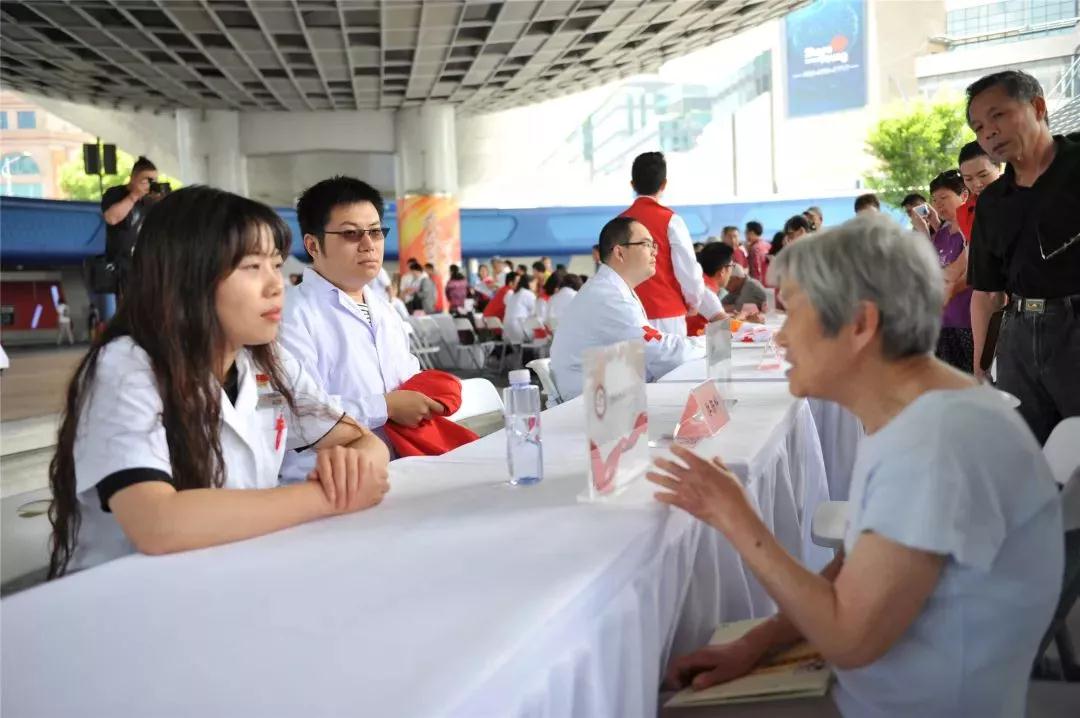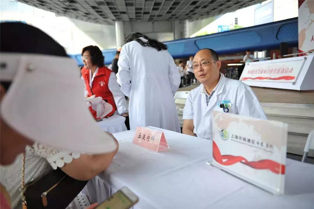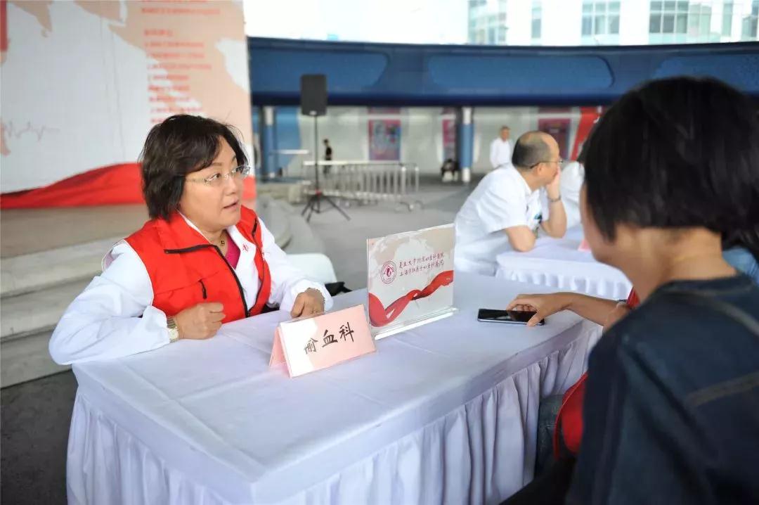 活动现场,杨浦区血液安全联盟11家医疗机构专家团队、一线医务人员、杨浦区卫健委监督所、中国人民解放军上海血站共同举行了联合义诊活动,为公民免费提供医疗咨询服务。