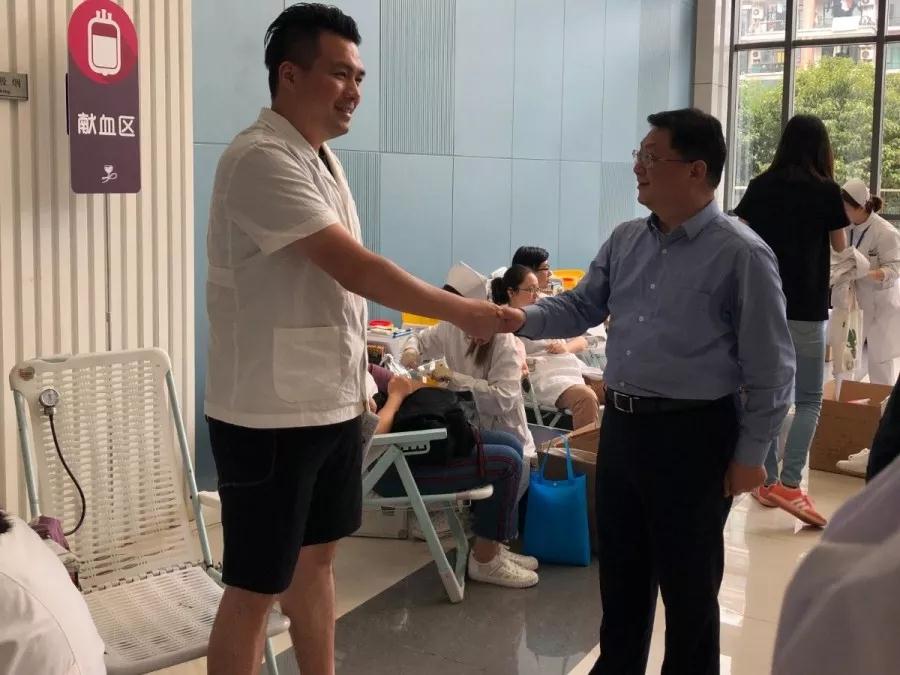 长宁区卫健委党工委书记池捷带领全体党政领导班子莅临活动现场对参与无偿献血的白衣天使致以亲切的慰问。