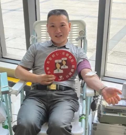 程家桥社区卫生服务中心书记马周理,连续五年参与无偿献血,去年参加无偿献血体检时因血压偏高未能达成心愿,今年他再次来到活动现场并且顺利完成了无偿献血,他开心的说:“我终于达成了心愿!”