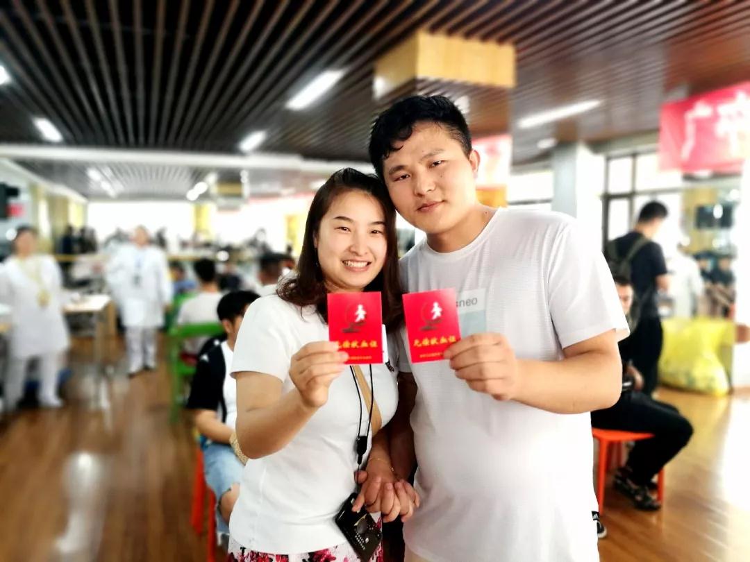 情侣俩拿着红色的无偿献血证,新式“秀恩爱”