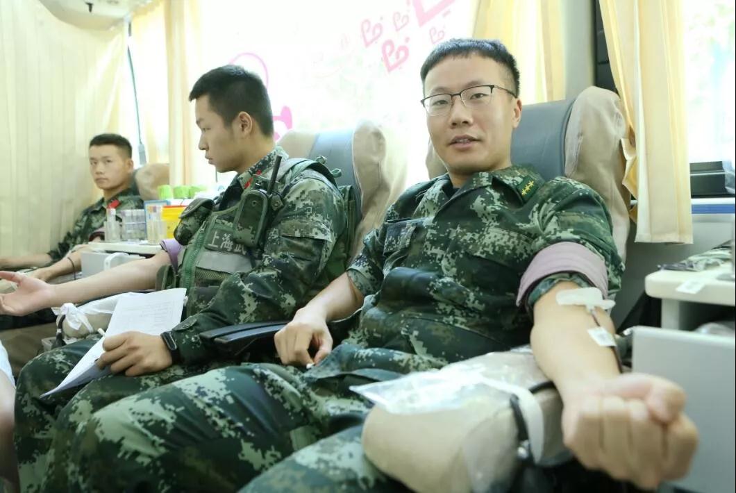 高温酷暑天,武警官兵们用无偿献血帮助他人的实际行动,展示了军人们强烈的社会责任感与浓浓的军民鱼水之情。