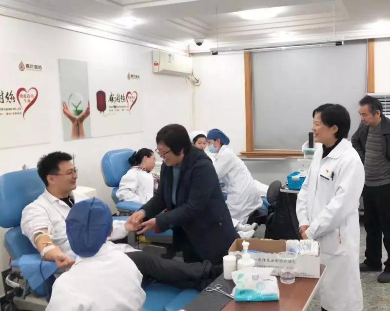 嘉定区卫生健康工作党委书记郑艳辉专程来到嘉定区血站慰问无偿献血的医务人员,与无偿献血人员亲切交谈,为他们鼓励、点赞!对无偿献血同志无私奉献的精神给予了充分的肯定,并仔细叮嘱大家一定要注意休息、保护好身体。同时她也希望通过医务人员的表率作用,能够呼吁更多的爱心人士积极参与到无偿献血工作中来。
