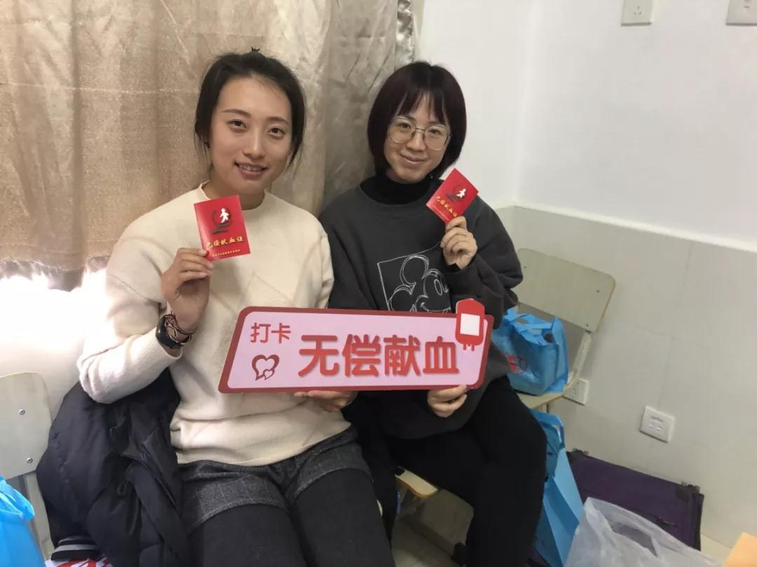 新农学校的两位美女老师,面对采血针时丝毫没有胆怯,这是她们俩第二次参加无偿献血,她们面带微笑手持无偿献血证留下了值得纪念的一幕。