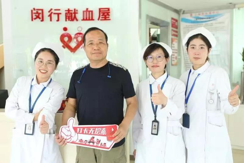 闵行区:中国输血协会理事长朱永明在梅陇爱心献血屋捐献血小板