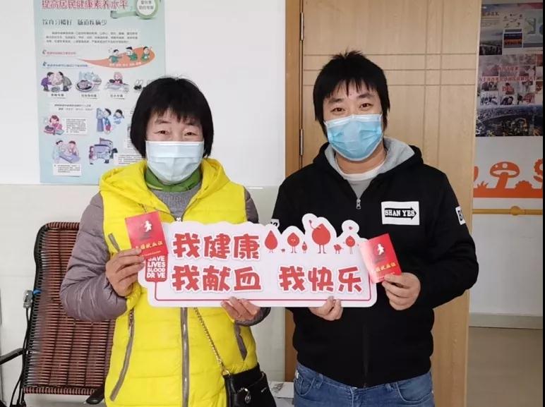 庄道花和贺建国是母子,他们都已无偿献血5次,本次分别捐献200ml和400ml。