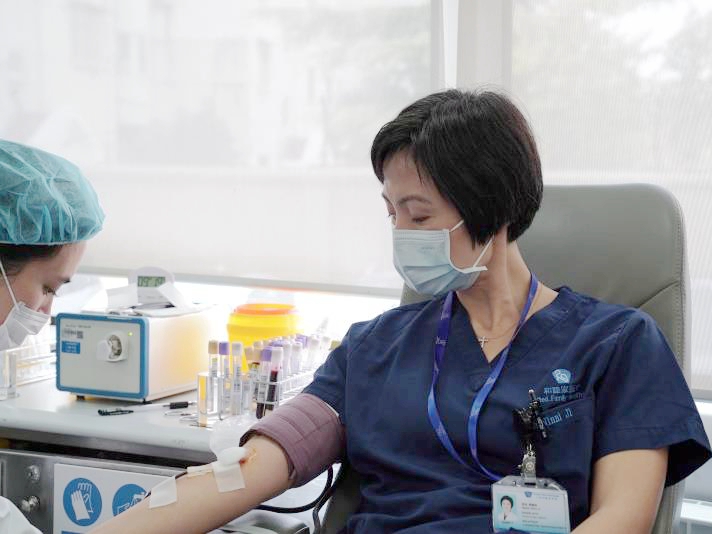 上海和睦家医院检验科经理曹晓伟也踏上了爱心献血车,用她的话说:“我们很多人都提出申请去武汉,但由于工作岗位的需要以及专业的问题我们不能去,那通过无偿献血的形式为这场战‘疫’出份力也是很好的。”在献血工作接近尾声时,她也踏上了献血车,为本次献血工作画上一个完美的句号。