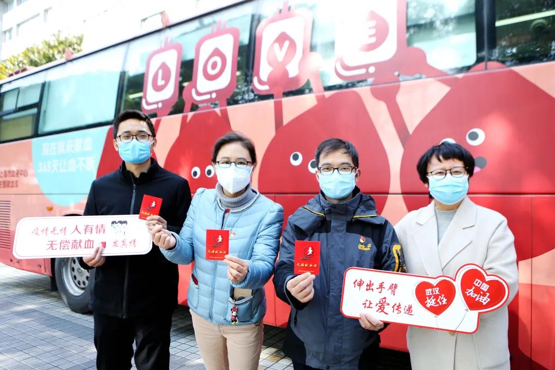 有过无偿献血经历的闵行区规划和自然资源局的四级调研员徐敏利和同事刘永达、倪一卓等也再次献出各自的热血。