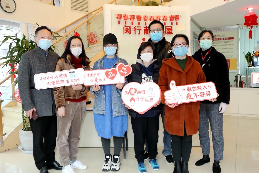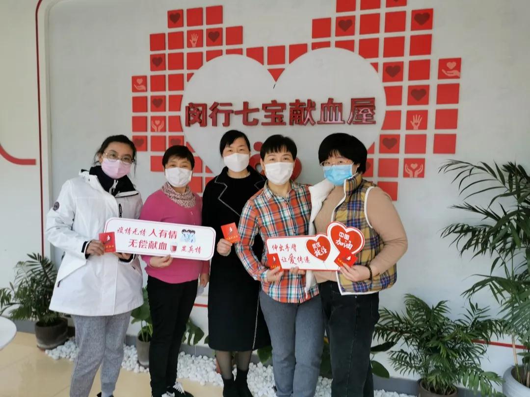 于2月22日刚完成第6次无偿献血的马桥社区卫生服务中心党支部书记褚湘农陪同中心职工朱乐乐、夏琴、朱敏琦、沈漪红等来到梅陇爱心献血屋捐献热血。
