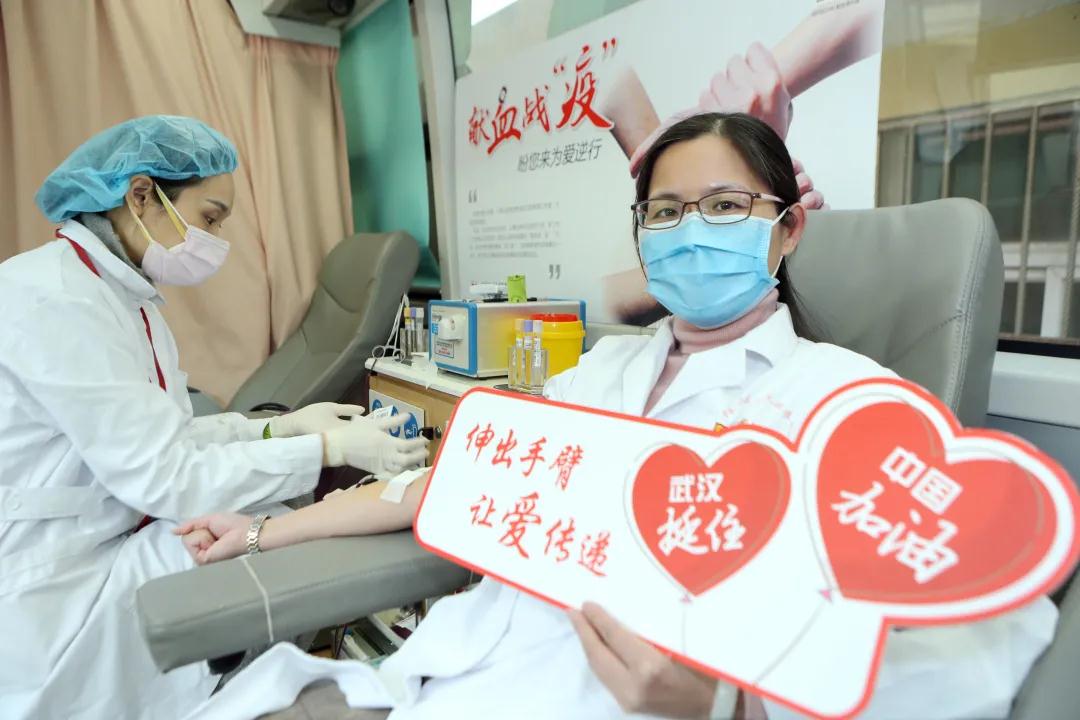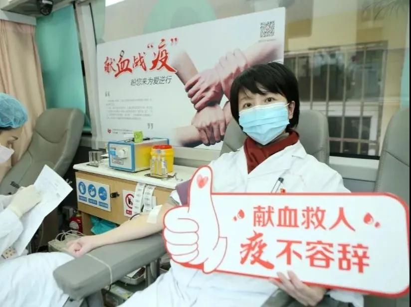 党政办主任陈希是第2次无偿献血,她说:“献出一份热血,希望能为抗击疫情增添一份微不足道的力量。”