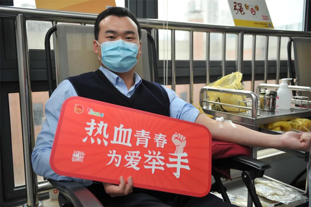 杨浦团区委秦恒书记带领机关11位党员来到献血现场撸袖无偿献血。团区委在疫情防控期间,鼓励全区团干部、团员青年在特殊时期挺身而出,倡议青年们加入到“赤诚青春,为爱举手”行动中来,捐献热血。团区委党员干部们身先士卒,化身“热血蒙面侠”展现赤诚青春风采。