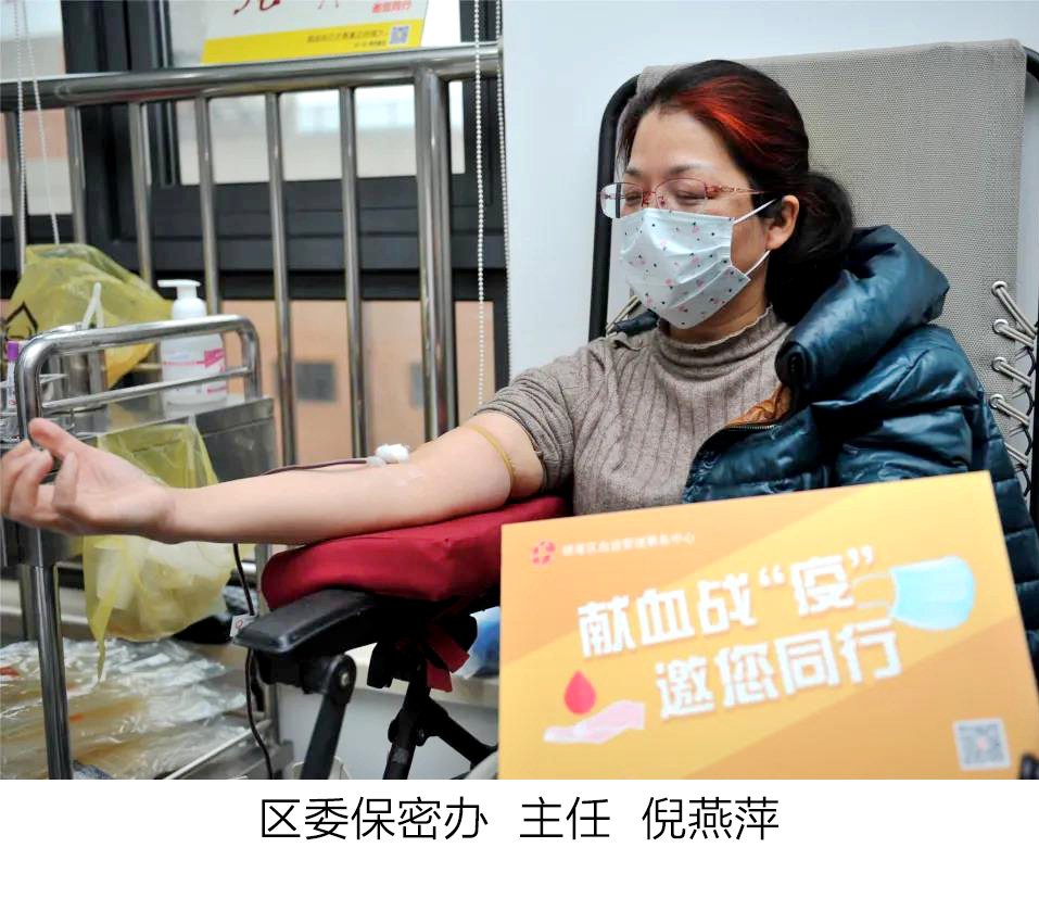杨浦区级机关工作党委是本次无偿献血活动倡议发起单位之一,负责人祝燕萍书记第一时间报名无偿献血,她说到:“正常人一次献血的量,很快能从脾、肝等‘贮血库’中得到补充,无碍健康。虽是小小的爱心,却可能挽救一个垂危的生命乃至破碎的家庭,非常有意义。”