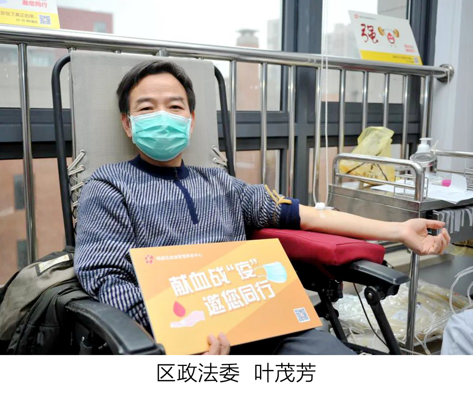 2月28日和3月2日,“献血救人、我们一起战‘疫’”杨浦区公务员团体无偿献血活动在区政府四楼举行。来自56个单位的100余位公务员纷纷无偿献血,募集血液20800ml。