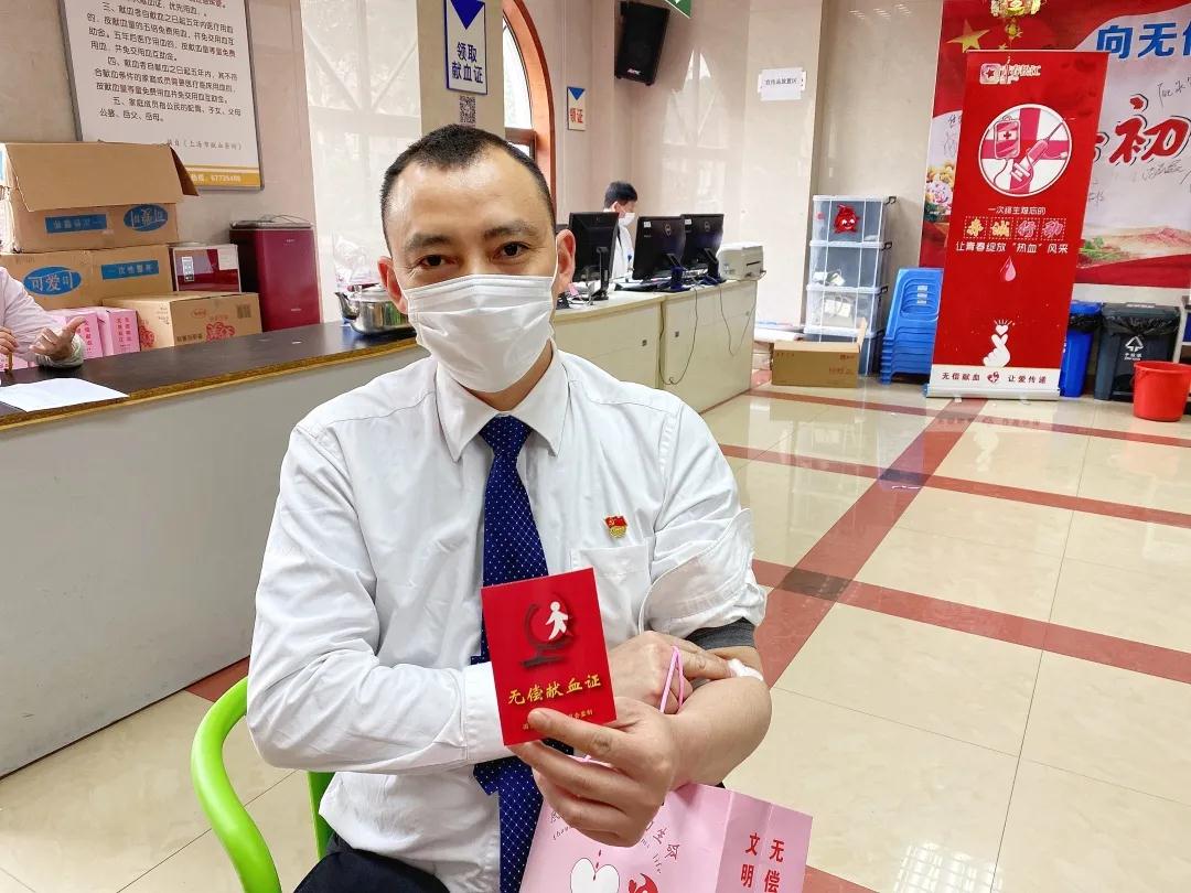 叶军是第四次无偿献血了,他是上海开元商业企业经营管理有限公司的职工,作为一名党员,不仅带头无偿献血,他还向身边的人普及无偿献血知识和血液的重要意义,招募更多的人爱心人士捐献爱心,为疫情防控“战”做贡献!