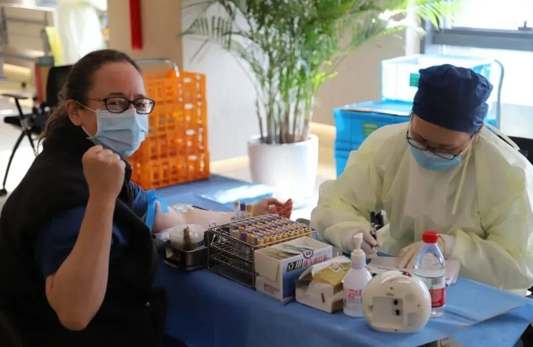 献血服务科党员张嬛老师在浦东新区血站工作近28年,即将退休的她没有想着安逸退休,而是主动请缨挽臂无偿献血200ml。这已是张老师第3次参加无偿献血,累计献血量600ml。她说:“现在疫情这么紧张,我能有机会做一点力所能及的事,真的很高兴。”