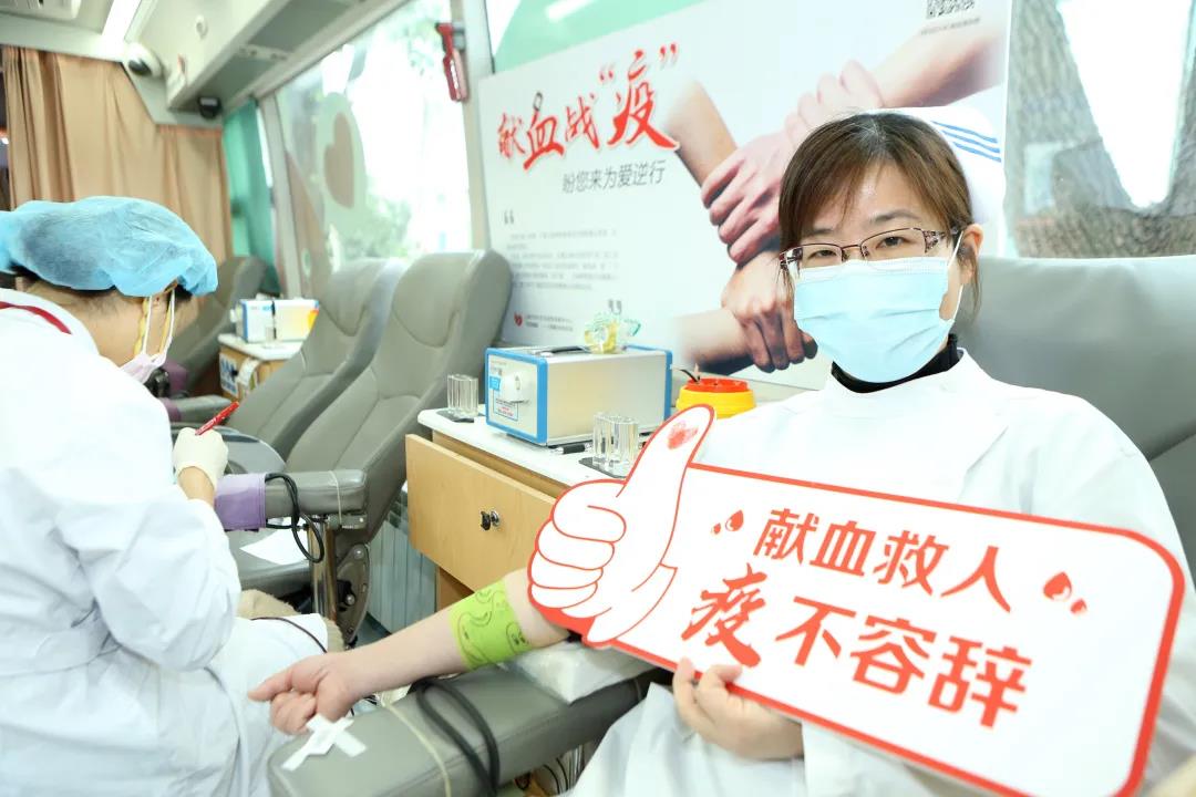 活动现场,所有的医务人员都怀着“不上武汉、就上爱心献血车救人”的迫切心情来捐献自己的热血。医防科的张天宇作为无偿献血活动的组织者,她早早地赶到活动现场,一切准备就绪后张天宇毫不犹豫地捐献出400ml血液。第6次无偿献血的她,止血、休息片刻后便又在现场忙前忙后着。
