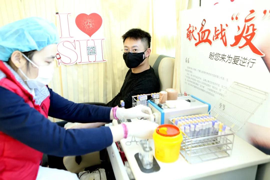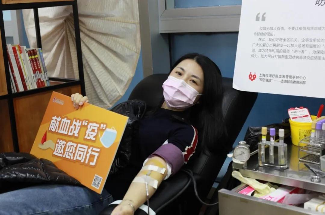 与此同时,七宝爱心献血屋一早也迎来了闵行区牙病防治所的“白衣天使”们。“白衣天使”们希望以献血救人的方式为抗击疫情出一份力。