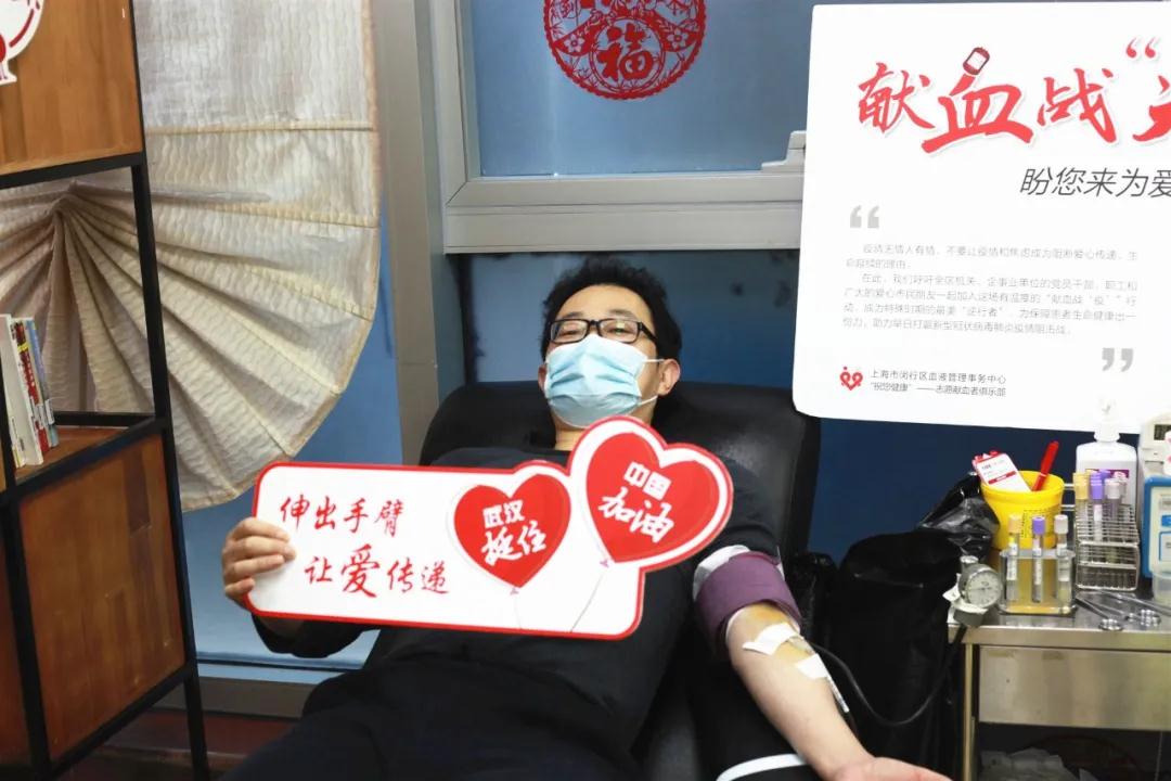 闵行区:“雷锋”来到闵行爱心献血点 捋袖无偿献血助力抗疫