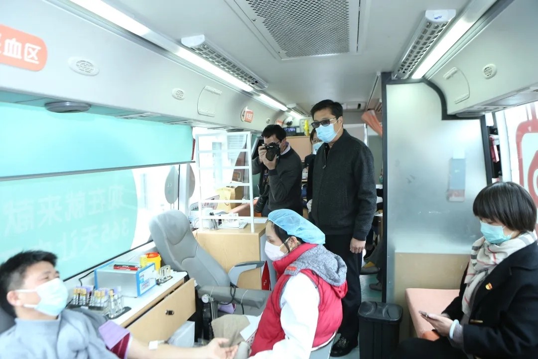 闵行区城市管理行政执法局党组副书记朱瑛等领导一直陪伴在无偿献血的同志身旁亲切问候与感谢,他也为同志们在如此繁忙的城市执法及社区疫情联防联控重任中,能冲在献血“前线”表示感动与欣慰。