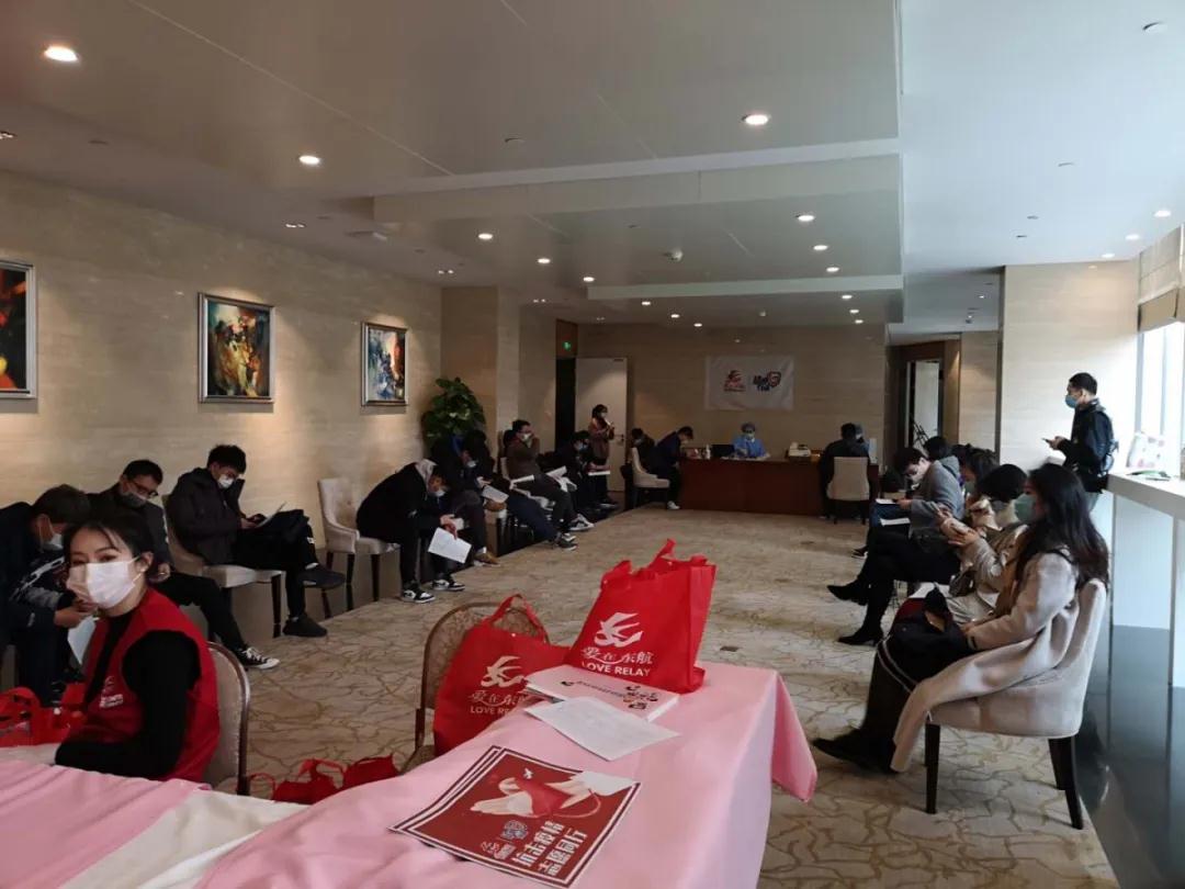 当天,整个无偿献血活动开展得井然有序。为了保障血源及志愿者安全,长宁区血管办统筹协调与血液中心、东航三方对接,相关管理人员前期反复进行沟通,严格按照疫情防控要求设计无偿献血流程,采取了让每一位无偿献血者都精准预约献血时间,东航综管部航卫部和东航实业机场宾馆专门协调布置了一片等候区。