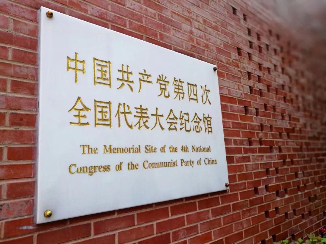 在中共四大纪念馆,党员们首先步入序厅,面对党旗庄重的举起右手,重温入党誓词。