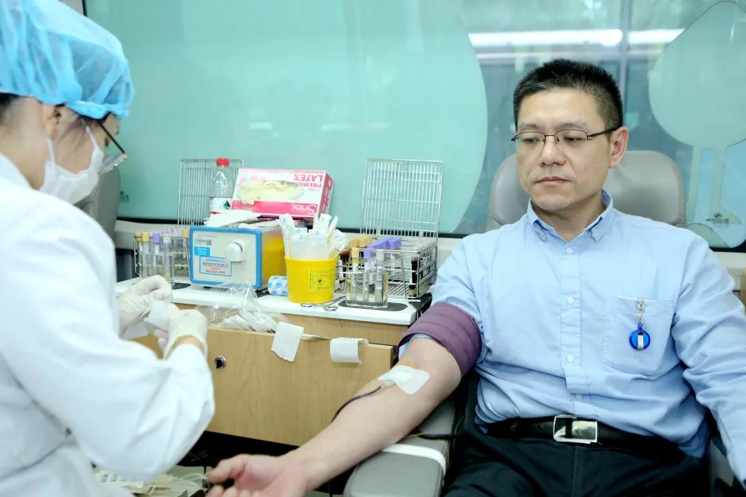 有着24年党龄的纪检监察审计部部长王亚东特意戴上党徽,来到献血活动现场,体检合格后献出热血,这是王部长第7次无偿献血了,他说:“时下,正在开展‘四史’学习教育活动,我们要把学习体会转化到实际行动中来,希望以献血救人的方式践行党员的初心使命和责任担当;况且献血不但无损健康,还能促进自身血液的循环。”
