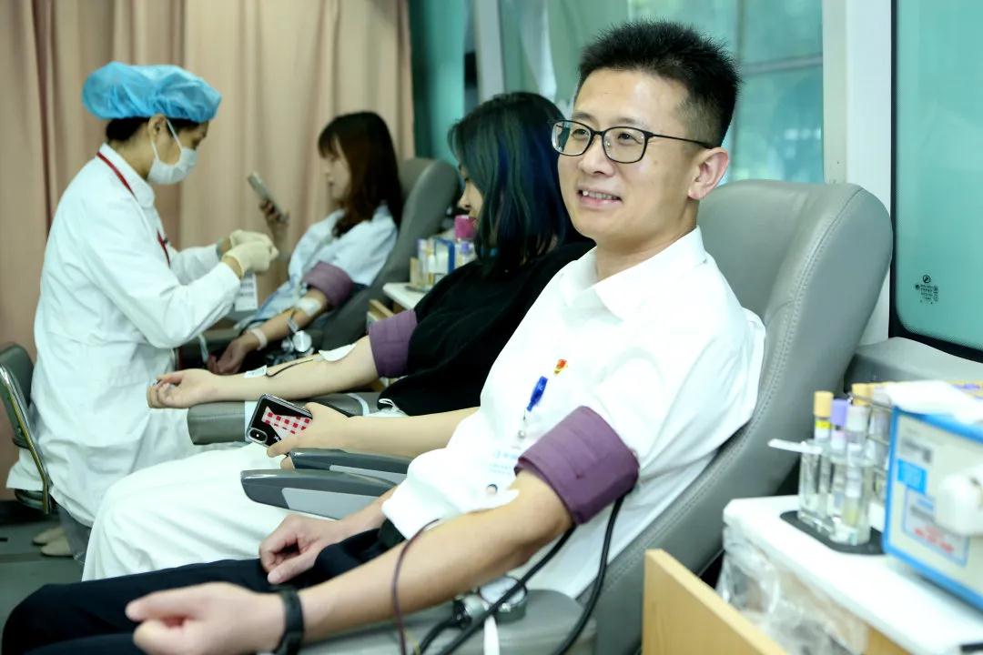 科技部的黄戊堏从大学时开始参加无偿献血,这是他第5次献血。同样是从大学时献血的还有刘溯,他也累计献血1600ml了。参加无偿献血的还有成华、张一鸣、陈佳丹、叶俊、刘晓之、包志远、张晓诗等59名员工。大家献血完毕,止血、休息后便回到各自的工作岗位。