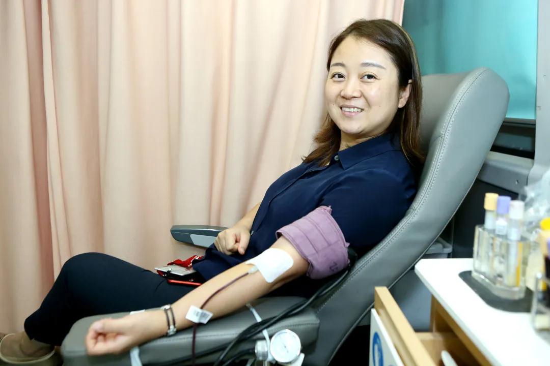 材料工艺部长张燕也和部门的同事潘昕等一起赶来分别献出各自的热血,这是张部长第6次无偿献血了,她说:“我住在市血液中心附近,比常人对献血了解的多一些,我在那还捐献过3次血小板呢。”