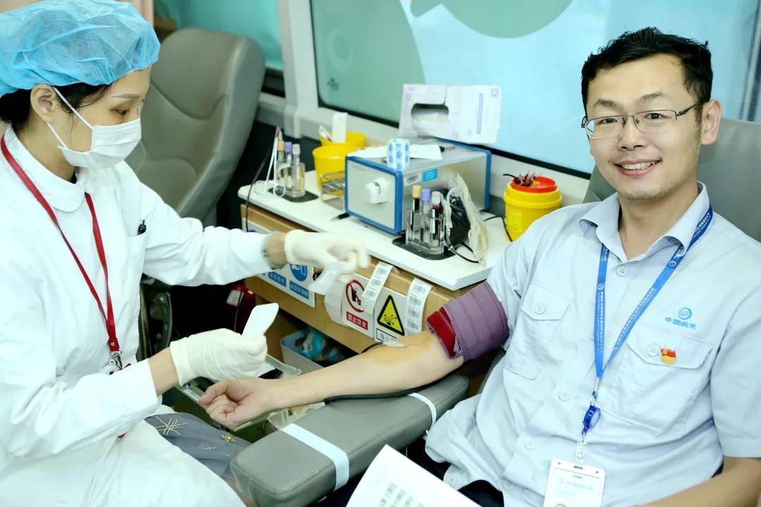 7月8日,中国航发商用航空发动机有限责任公司(简称“中国航发商发”)一年一度的“员工团体无偿献血活动”如期举行,59名爱心员工分时分批登上停在服务中心门前的“小血人”爱心献血车捐献热血。公司党群工作部副部长谢卫东、区血液管理事务中心主任诸培红等领导到场向参加无偿献血的员工表示感谢和慰问。