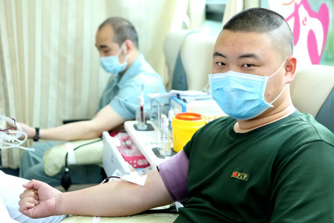 有着5次无偿献血经历的厂消防员蒲东海体检合格后,毫不犹豫地再次献血400ml,24岁的他已累计捐献血液2400ml。