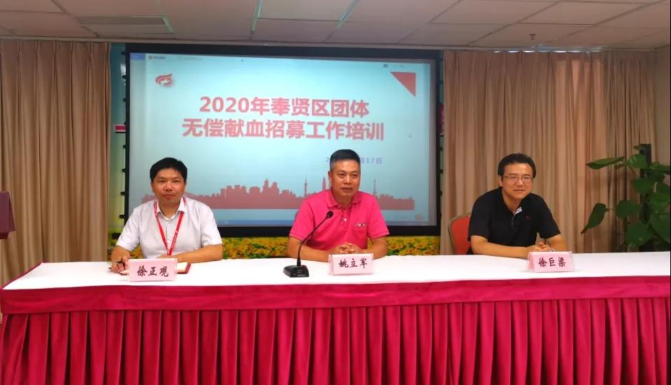 7月17日下午,奉贤区血站举办了“2020年奉贤区团体无偿献血招募工作培训会”。奉贤区卫健委姚立军副主任及徐巨梁副主任出席并讲话。各镇、街道、开发区管委会及头桥集团的血液招募工作者参加了该会议。
