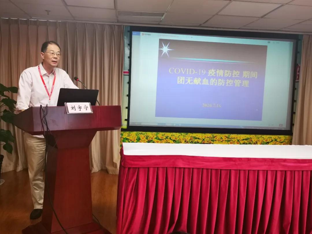 奉贤区血站刘宇宁副站长介绍疫情防控血液采集中的安全防控工作,要求不能放松意识,还需严控严抓。
