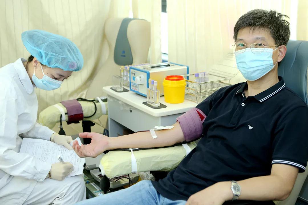 集团高级副总裁张正才先后在香港、深圳无偿献血达54次,闻讯无偿献血活动后张总早早地来到现场,体检合格后他毫不犹豫地伸出臂膀再次无偿献血400ml,53岁的张总说:“我从大学毕业后开始参加无偿献血,对身体没有任何不适的影响,能挽救他人生命是一件很快乐的事情。”