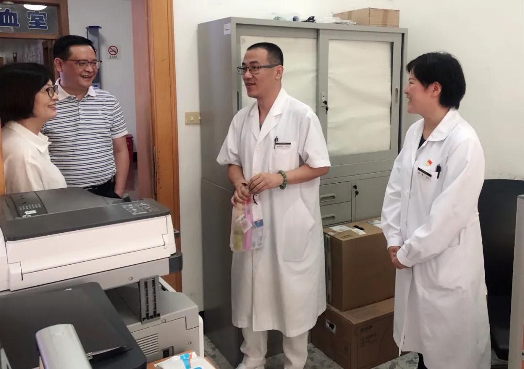 8月4日上午,上海市血液中心党委书记、上海市血液管理办公室主任邹峥嵘、质量督导部部长张统宇、综合服务部部长徐茹怡、质量督导部王伟群一行来到嘉定区血站,向坚守岗位的工作人员表示慰问和关心,同时开展上海市血液管理“十四五”规划编制工作调研。嘉定区卫生健康委员会主任方云芬陪同慰问并参加调研。