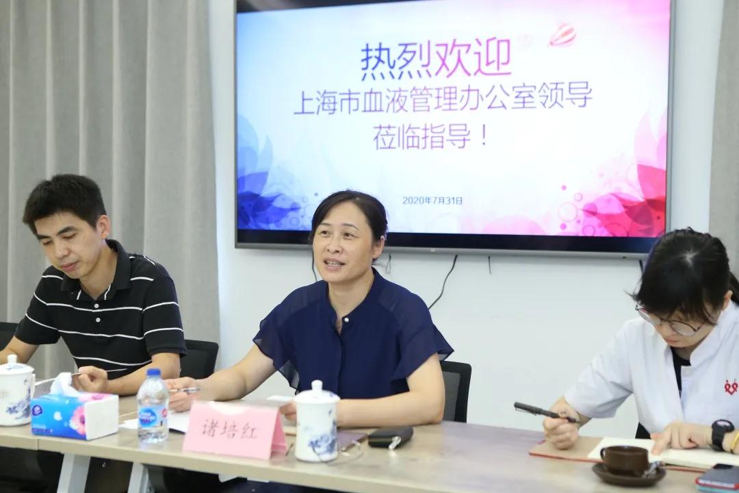 在“蜂巢”——闵行区献血志愿者之家,区血液管理事务中心主任诸培红就中心工作人员分工、疫情期间应急献血、辖区夏季血液募集情况、临床用血安全、志愿者队伍管理及下半年重点工作等向领导们作了详细的汇报。
