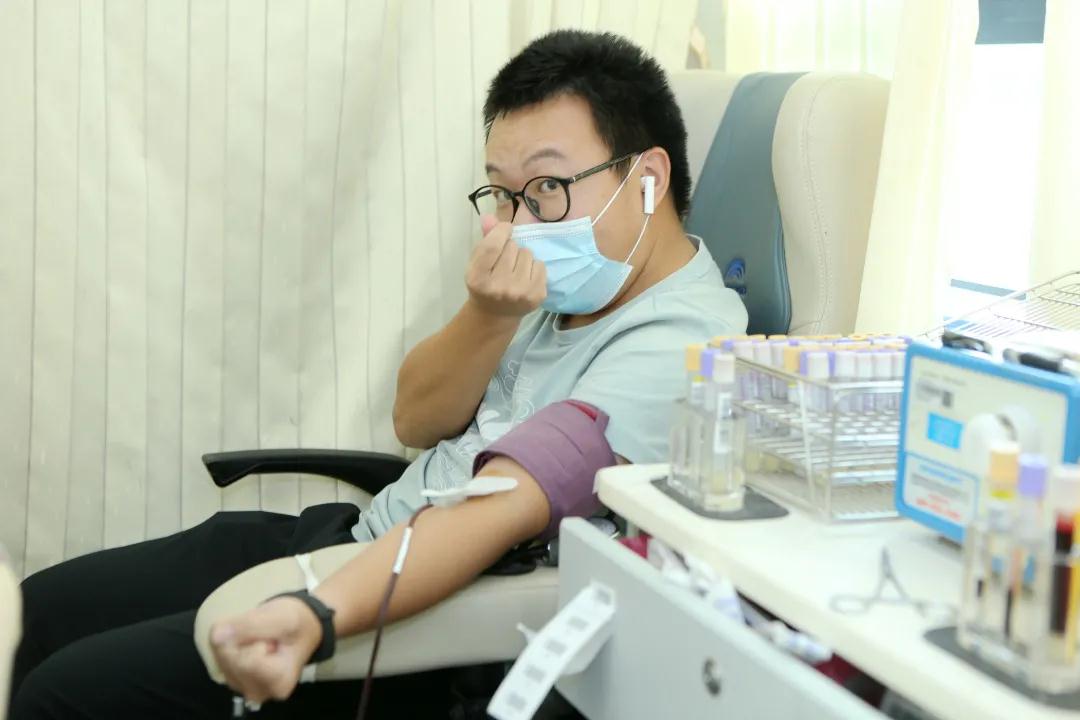 闻讯无偿献血活动后,看上去身材瘦小的博士奚丹丹也赶来完成人生中第一次无偿献血。同样看上去瘦瘦的范芳君却已是第8次无偿献血了,累计捐献血液达2800ml,献血完毕,她止血、休息后便悄然离开。小伙子李嘉皓、李朝阳是首次无偿献血,体检合格后,两人毫不犹豫地分别捐献400ml血液。同样是首次无偿献血的黄兰兰、何莉芳体重只有90斤出头,也不甘示弱地奉献出浓浓的爱心真情。从大学开始献血的马强是第5次无偿献血,再次献血400ml的他显得淡定自如。