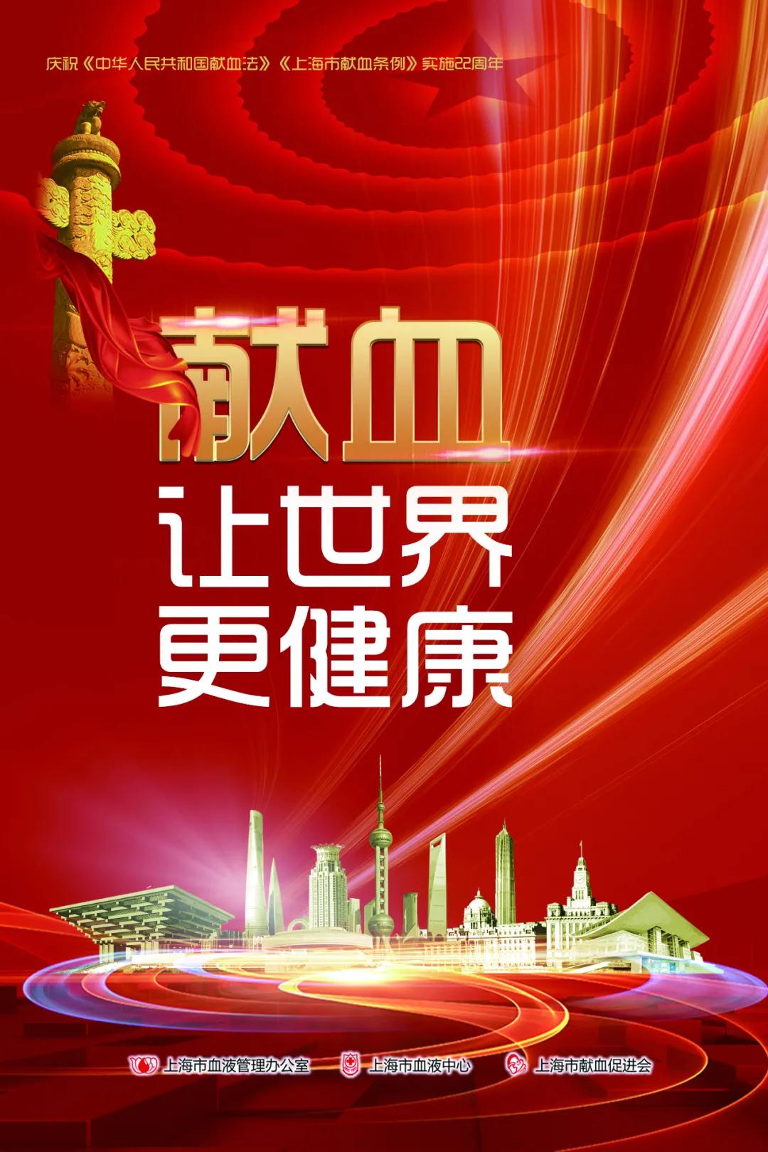 即将到来的10月1日,是喜迎国庆欢度中秋的好日子,也是《中华人民共和国献血法》(以下简称《献血法》)、《上海市献血条例》(以下简称《献血条例》)实施22周年纪念日,今年的主题是“献血,让世界更健康”。
