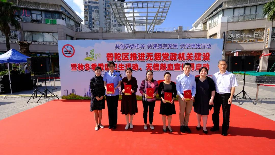 “共创无烟机关 共建清洁家园 共促健康行动”——2020年普陀区推进无烟党政机关建设暨秋冬季爱国卫生运动、无偿献血宣传月启动。