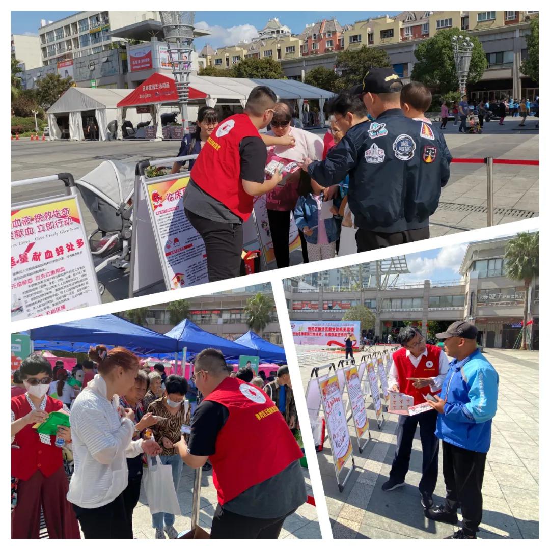 启动仪式结束后,普陀区无偿献血志愿者在梅川路步行街开展面向周边居民和沿街商户的科学献血者知识普及、临床用血政策宣传活动,呼吁全区各界继续关注、支持和参与无偿献血事业,进一步推进无偿献血制度的全面落实,为积极培育“无偿献血是健康生活一部分”的大健康理念添砖加瓦。