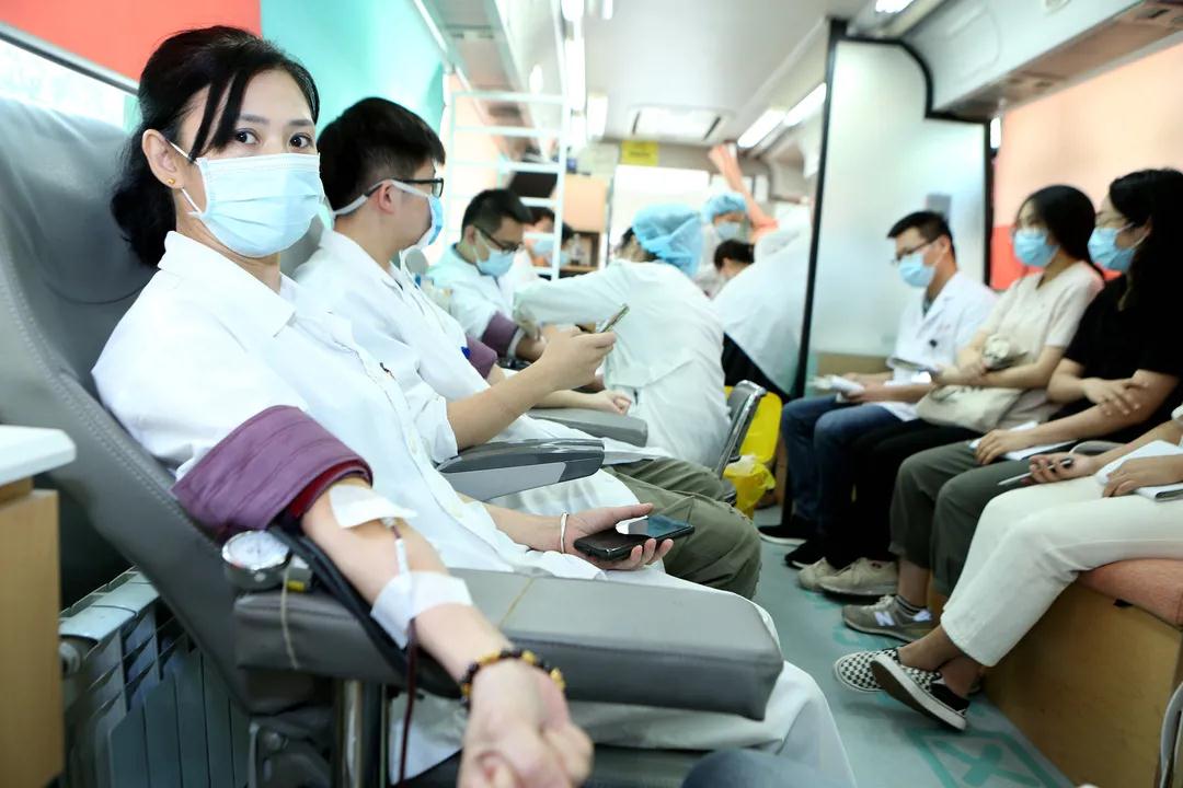 参加无偿献血的“白衣天使”还有曾远菲、王雨童、龙逸天、丁莹、俞家伟等43人,大家献血完毕,止血、休息后便回到各自的科室继续忙碌。
