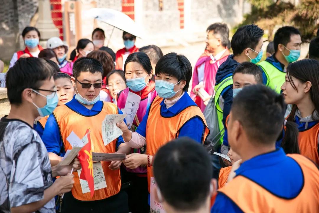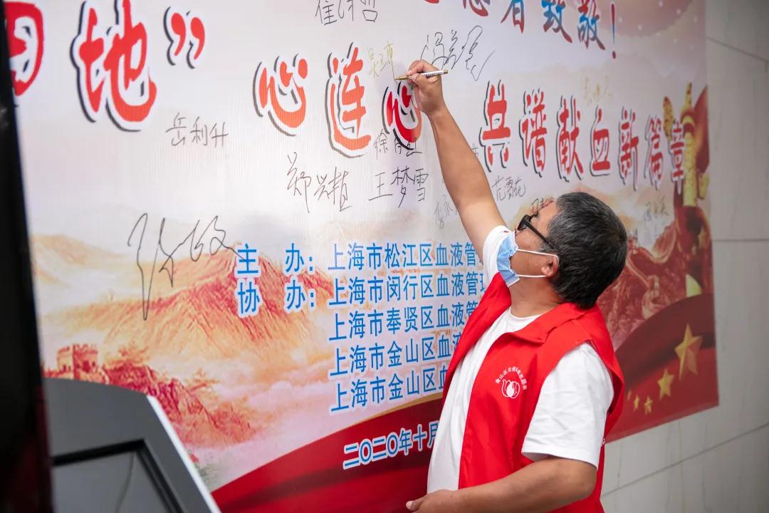 松江区和金山区代表举行队旗交接仪式,把无偿献血精神传承下去,期待明年金山再相见。