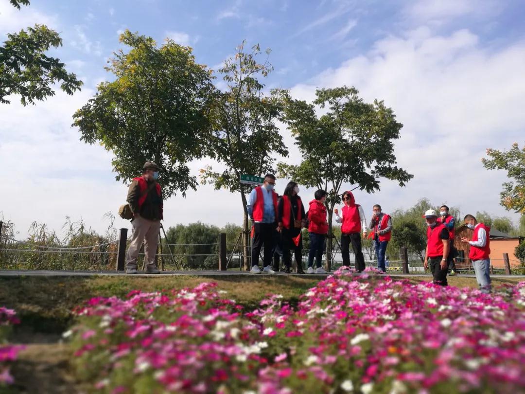 清晨,乘上观光车的志愿者们开启了本次金秋之旅,来到了青西郊野公园。