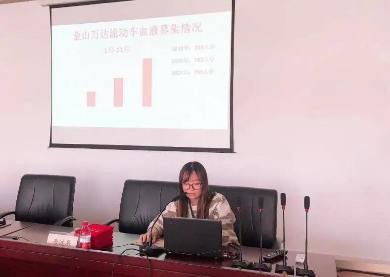 会上,金山区血液管理事务中心钱敏总结了2020年金山区无偿献血志愿者的工作情况。