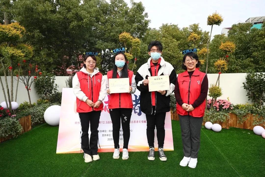 刘少东、鲍睿来自上海理工大学志愿服务部,负责上海理工大学朝阳志愿者队伍各项工作,也是本次活动发起人之一。为确保活动顺利开展,志愿者们组建了一支12人的服务团队,协助血管中心开展各项工作,为整场活动保驾护航。活动中,杨浦区血液管理事务中心主任孙云、副主任孔艳分别向刘少东、鲍睿授予2020年度朝阳献血宣传与服务项目“优秀组织者”荣誉称号;向韩欣明、袁文博等8位志愿者授予“最活跃志愿者”称号,感谢他们的积极付出。